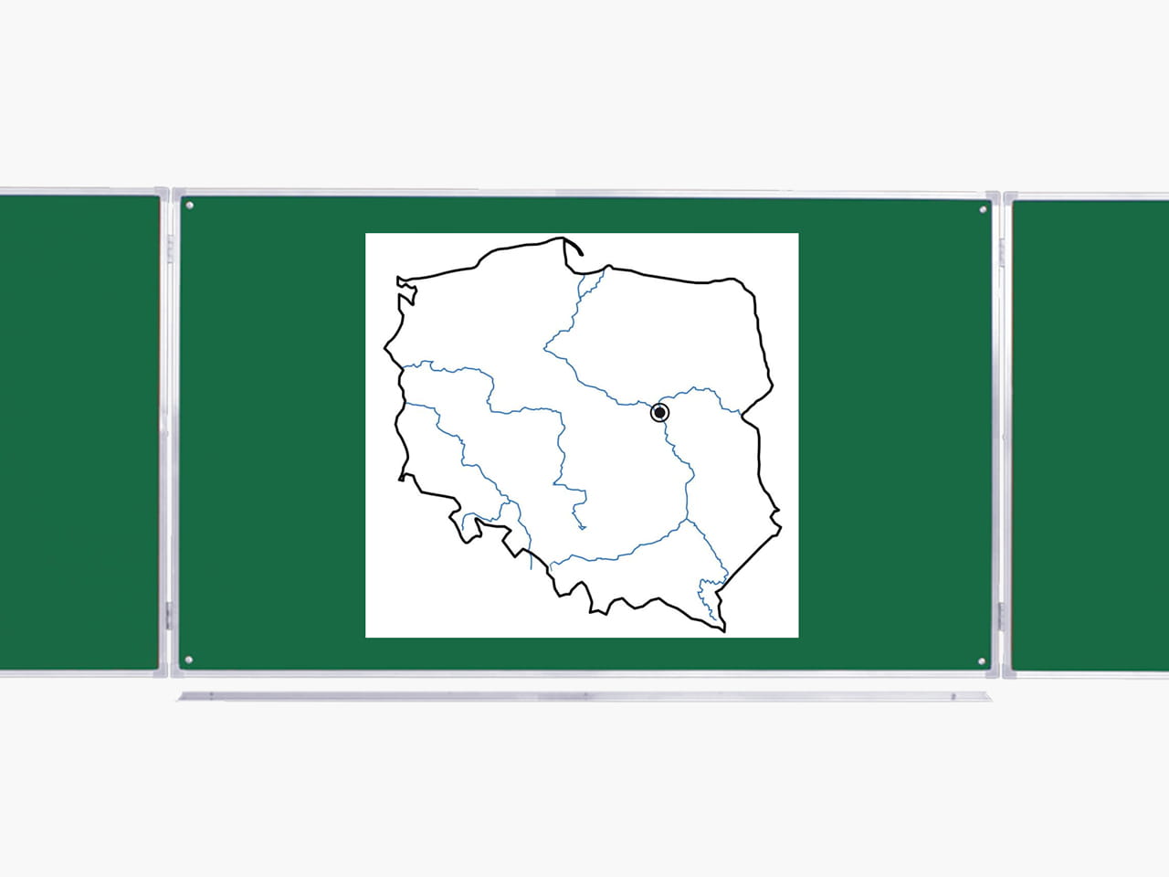 Teraz już nie ma potrzeby malowania trwałego konturu granic Polski na tablicy i tracenia w ten sposób jej powierzchni. Skorzystaj z mobilnego rozwiązania, dzięki któremu błyskawicznie w miarę potrzeb przykleisz na powierzchnię posiadanej tablicy, gotowy rysunek - podkład. Skrócisz czas poświęcony na doraźne nanoszenie konturu granic, przechowasz zapis lekcji lub jednym ruchem nakleisz /odkleisz/ na tablicę gotowe zadanie lub sprawdzian.