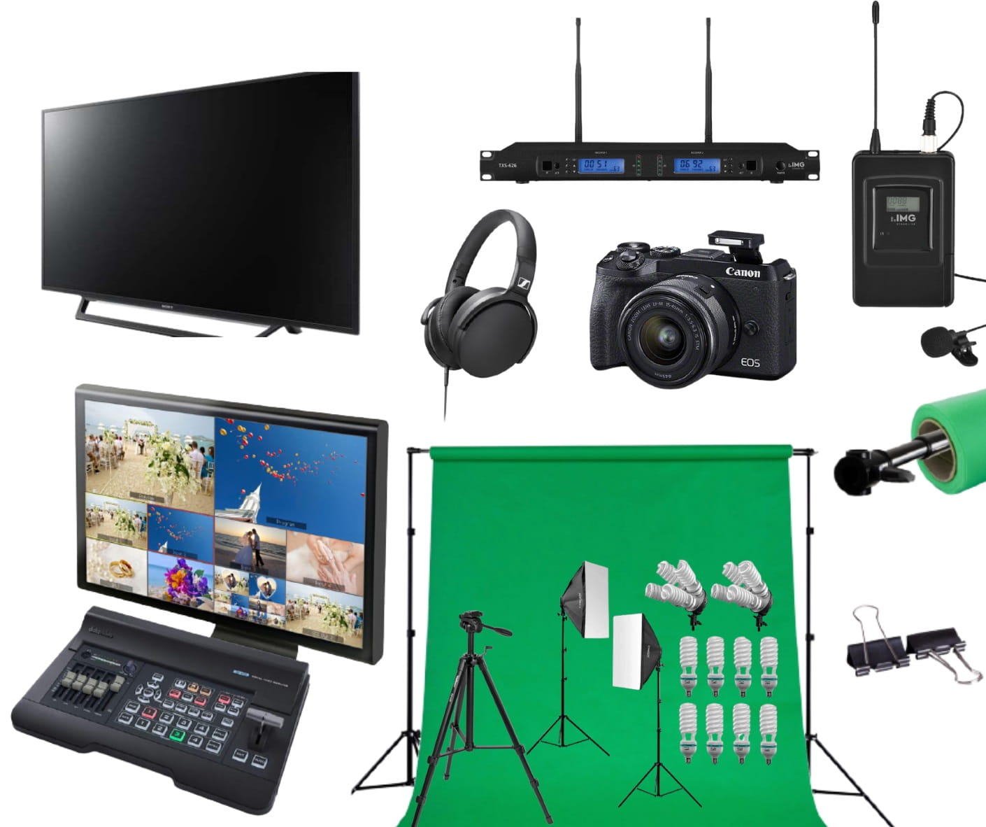 Do zestawu dołączany jest aparat cyfrowy Canon EOS M6 Mark II. Jest to jedna z najlepszych propozycji na rynku, cechująca się bardzo dobrym stosunkiem ceny do jakości. Aparat pozwala nagrywać filmy w jakości 4K. Dzięki kompaktowej konstrukcji jest świetnym rozwiązaniem do wykorzystania w studio telewizyjnym, jak i w plenerze.