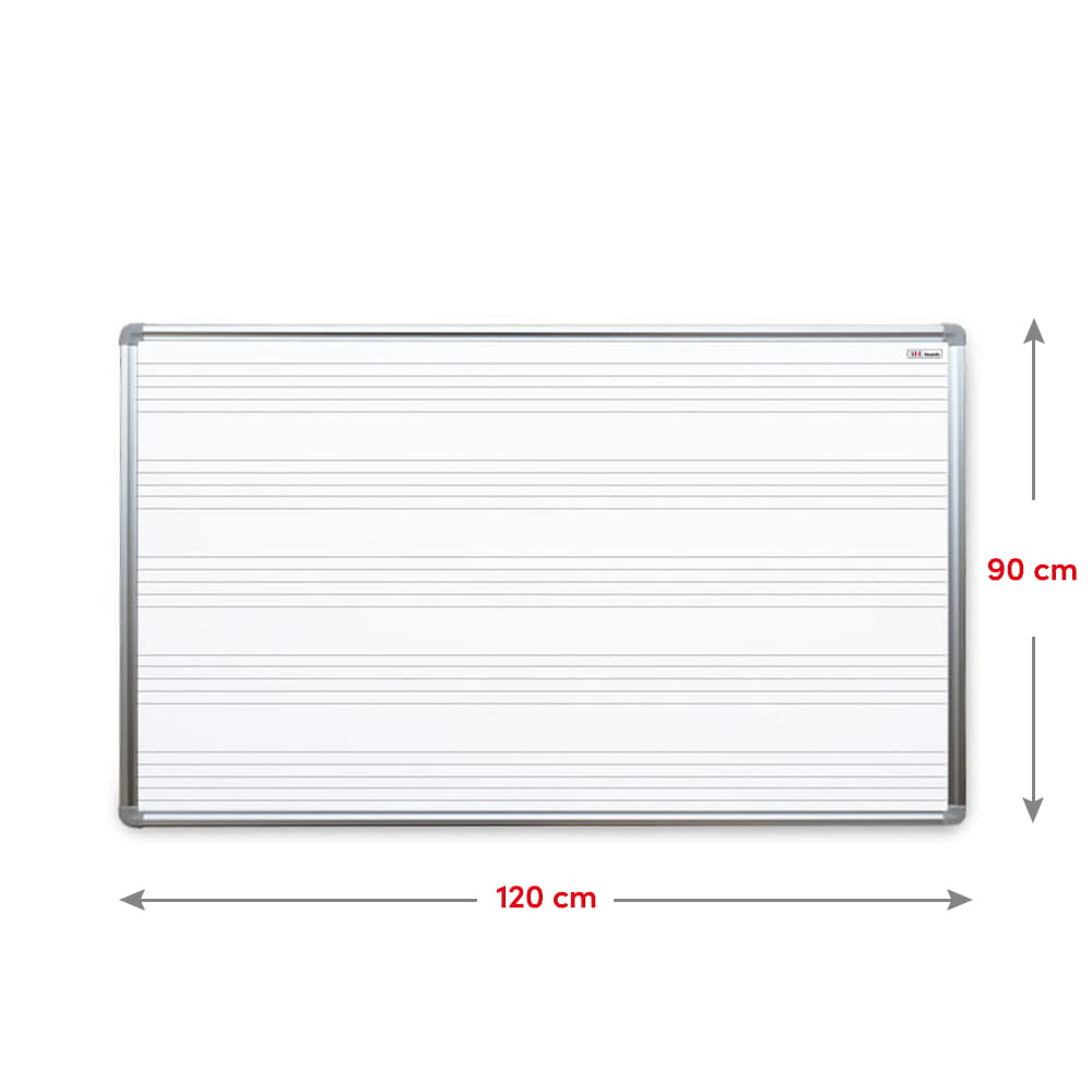 Tablica suchościeralna magnetyczna biała w ramie aluminiowej anodowanej EXPO, wykonana z wysokiej jakości blachy, z nadrukiem - pięciolinia do nauki nut.