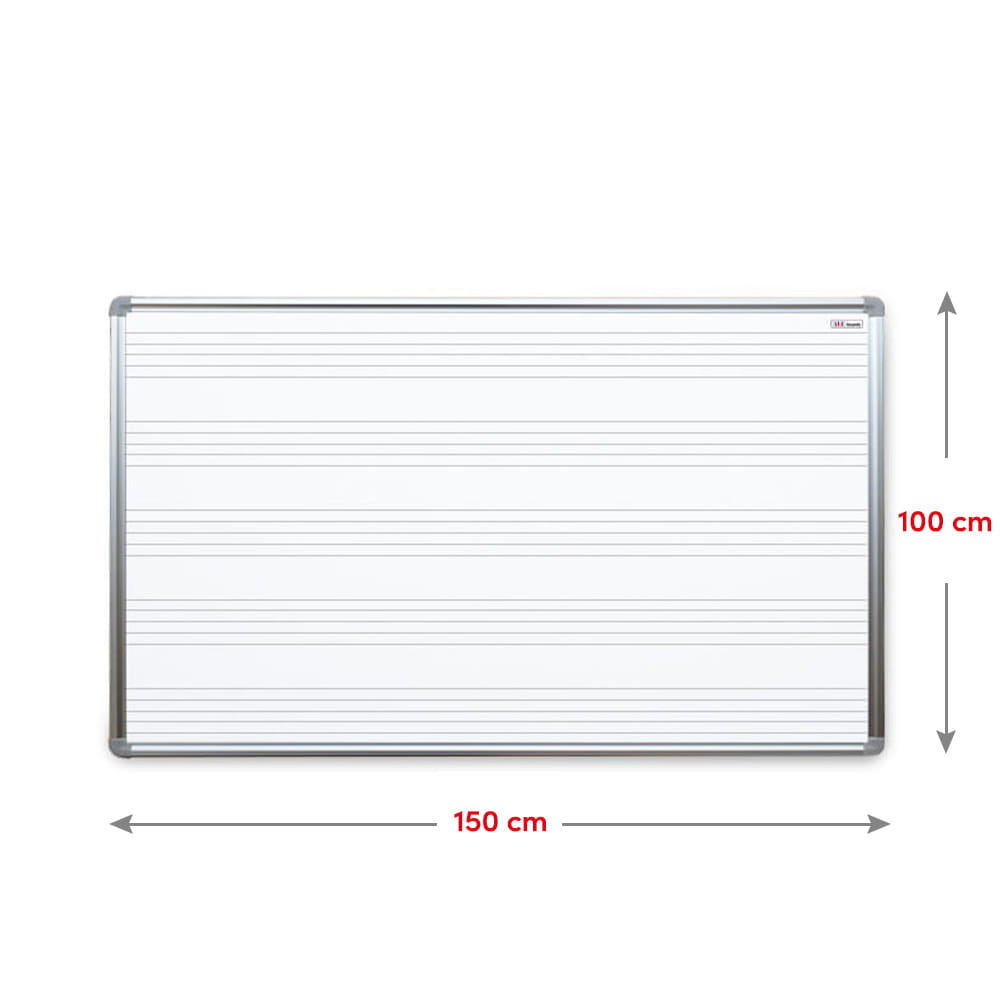 Tablica suchościeralna magnetyczna biała w ramie aluminiowej anodowanej EXPO, wykonana z wysokiej jakości blachy, z nadrukiem - pięciolinia do nauki nut.